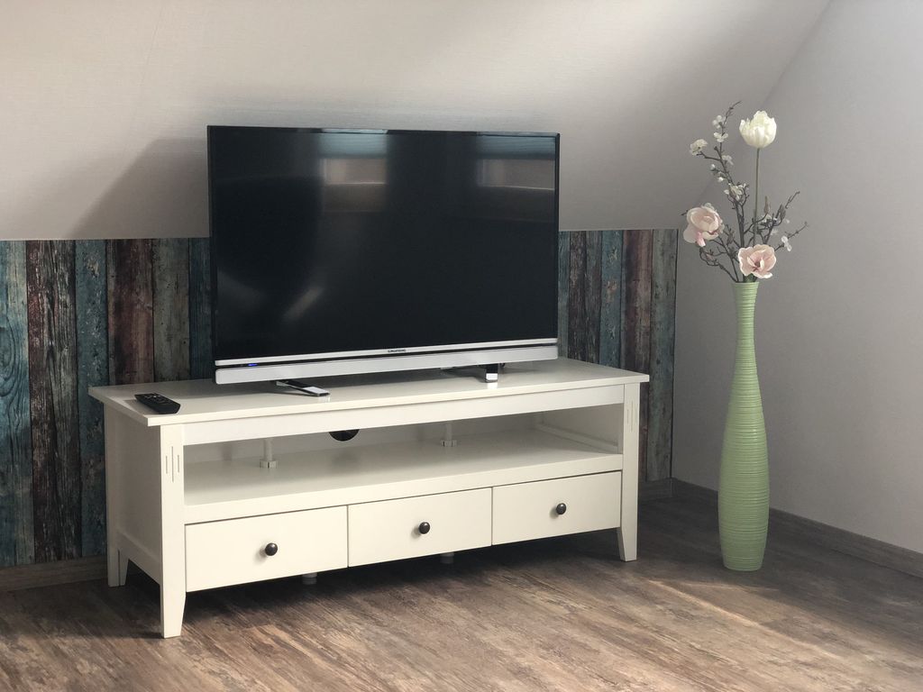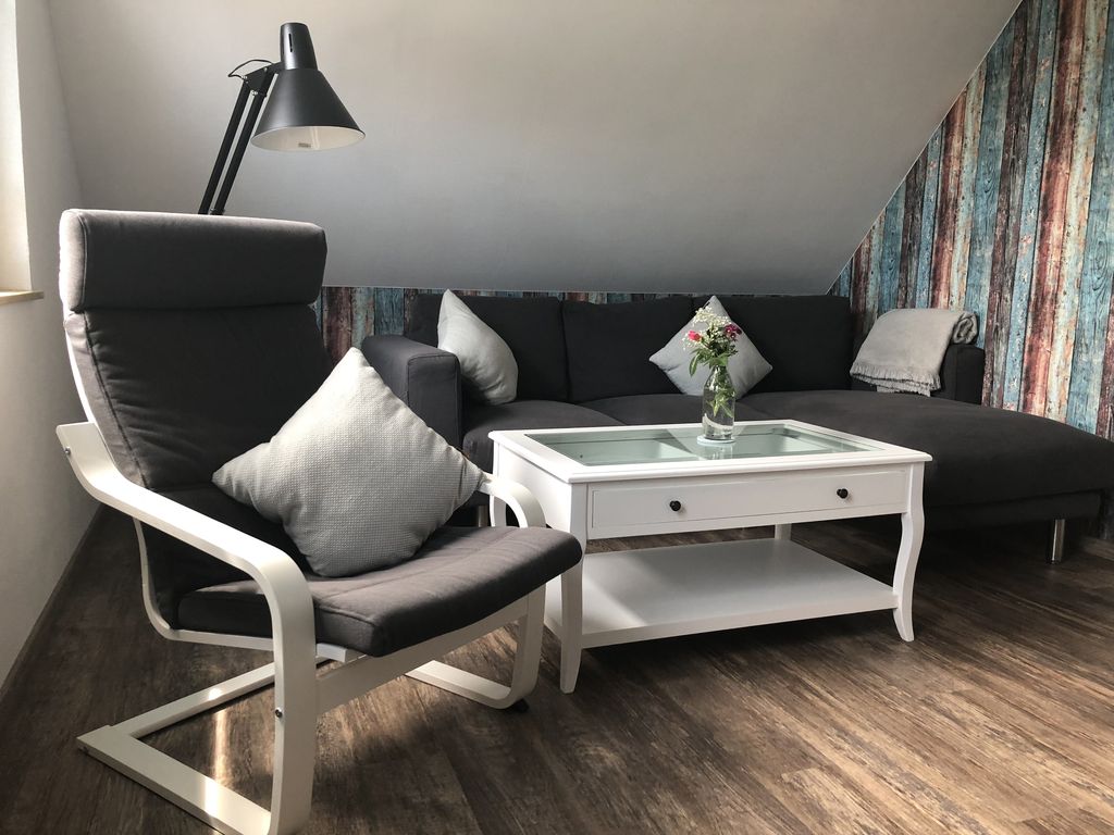 Es erwartet Sie ein Wohnzimmer mit gemütlicher Couch, Sat-TV und schicken Landhausmöbeln. Bücher, Gesellschaftsspiele und Malutensilien für Kinder sind vorhanden. Das Schlafzimmer besitzt ein gemütliches und großes Doppelbett, ein weiteres Einzelbett ist ebenfalls vorhanden. Auch hier sind wir dem Landhausstil treu geblieben. Die Belegung ist für 2 Erwachsene + Kind ideal. Bei Bedarf können wir ein kleines Baby Reisebett zur Verfügung stellen.